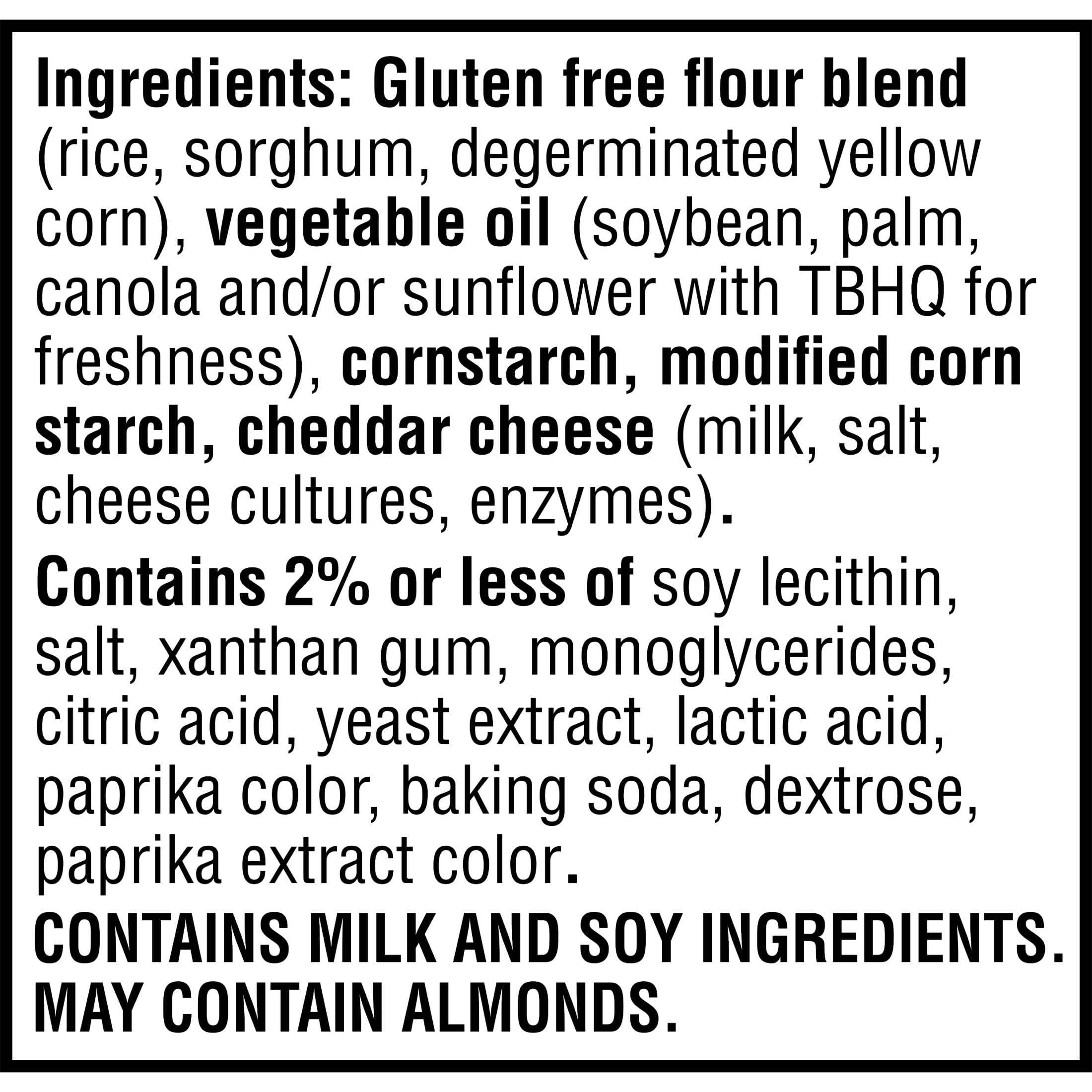 - Made with 100% real cheese for a bold taste; Certified gluten free by GFCO; Kosher Dairy; Contains milk and soy ingredients