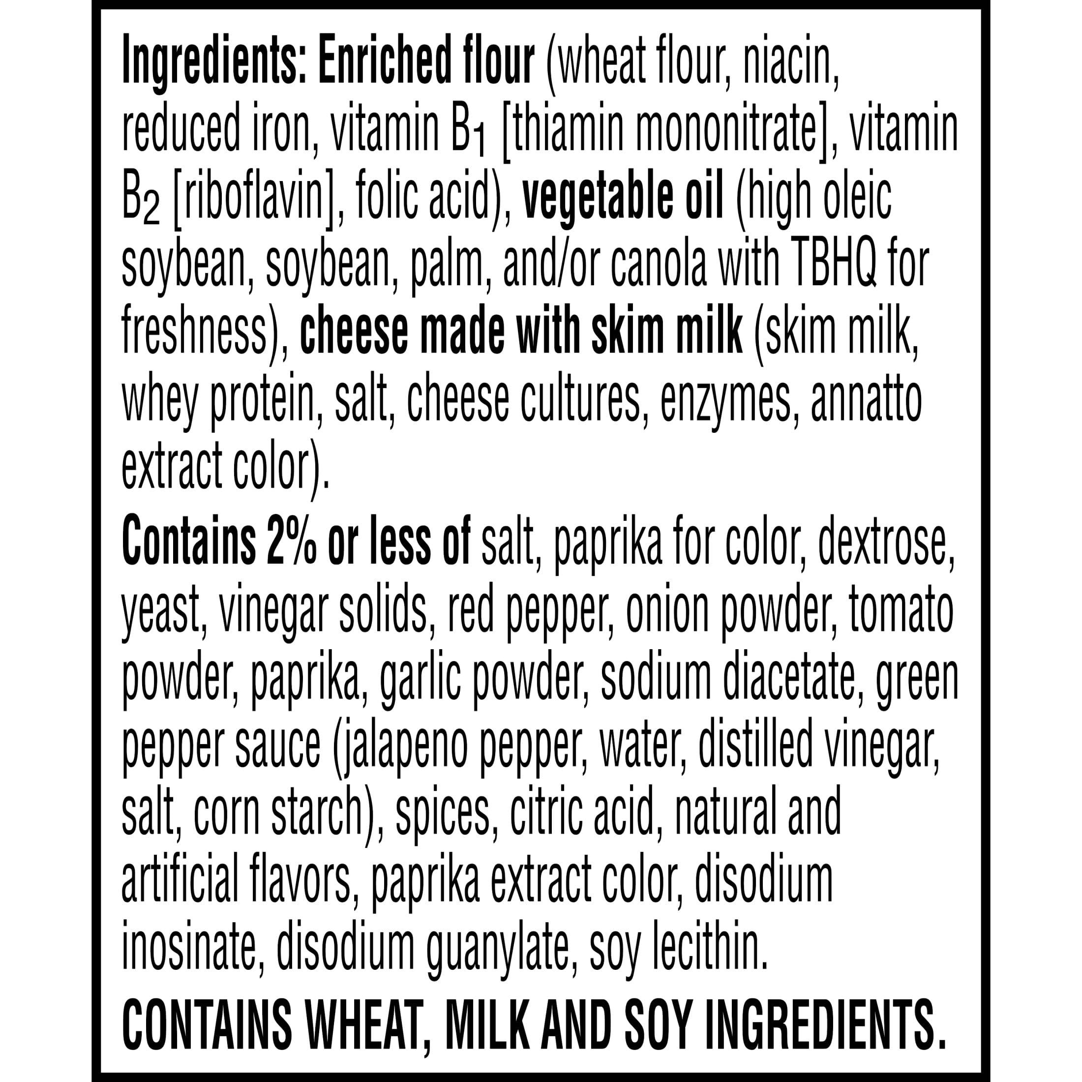 - Light and crispy bite-sized snack crackers made with real cheese, a kick of spiciness, and a dusting of salt