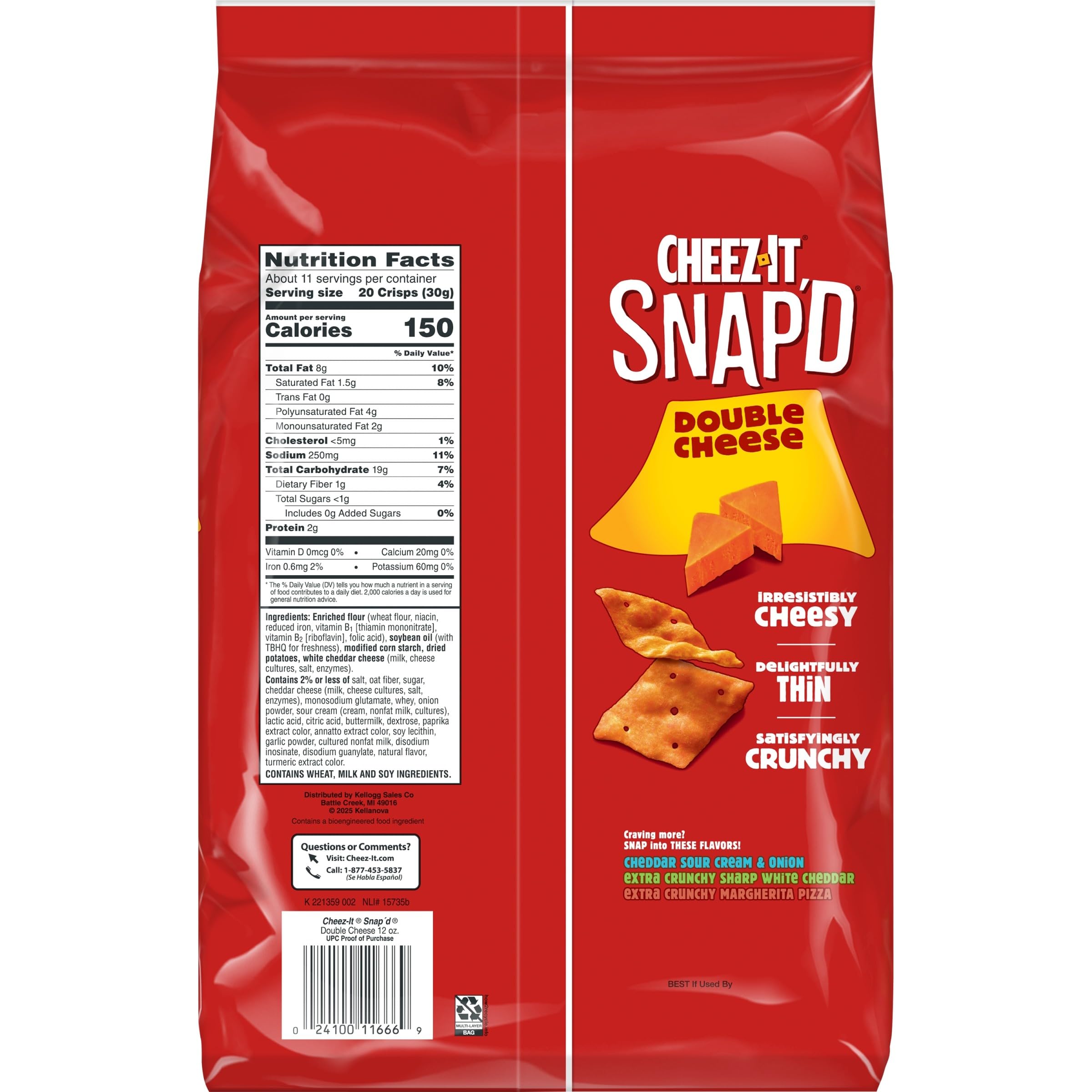 - Includes 1, 12oz family-size bag of ready-to-eat Cheez-It Snap'd cheesy baked chips; Packaged for freshness and great taste